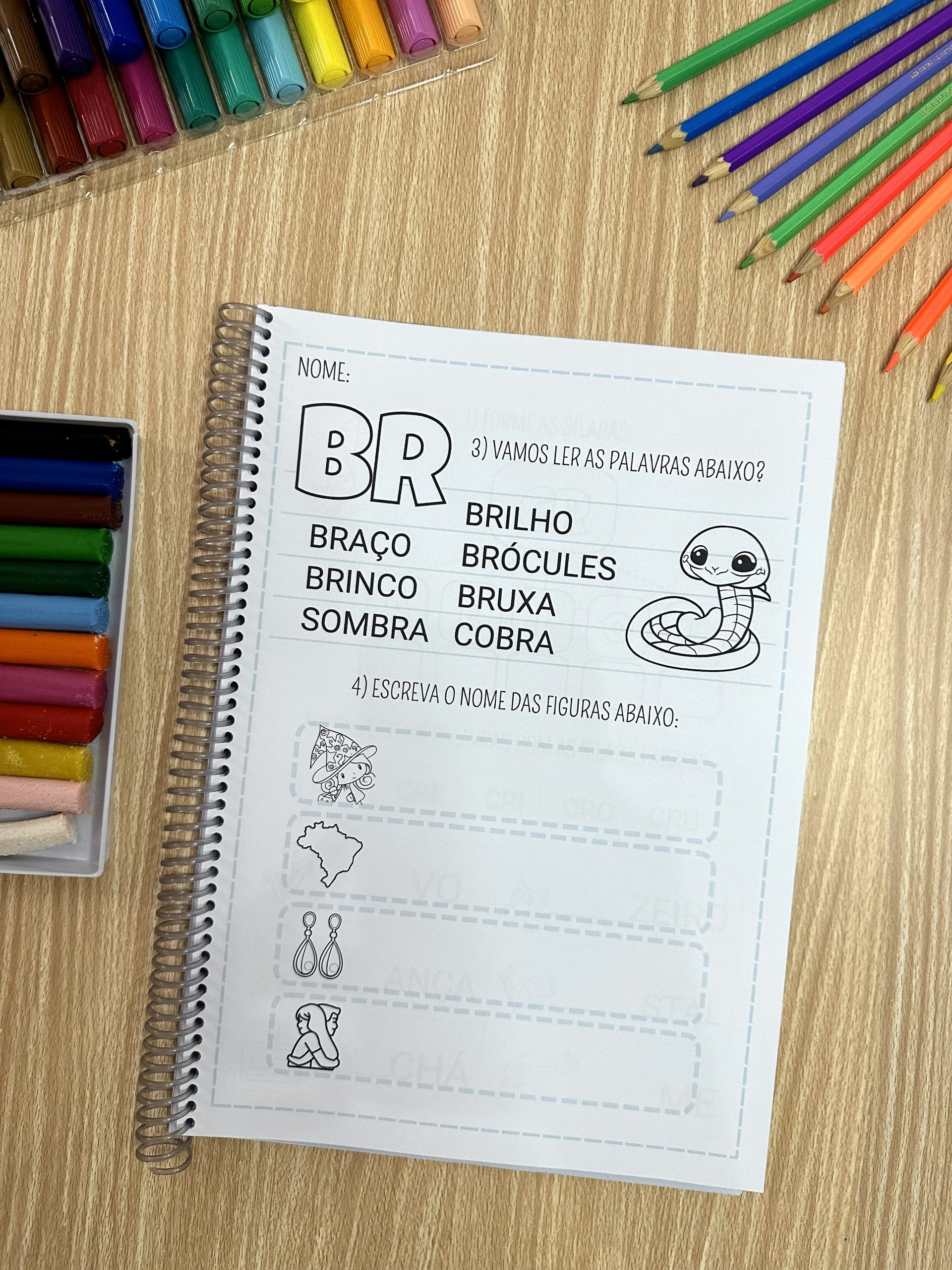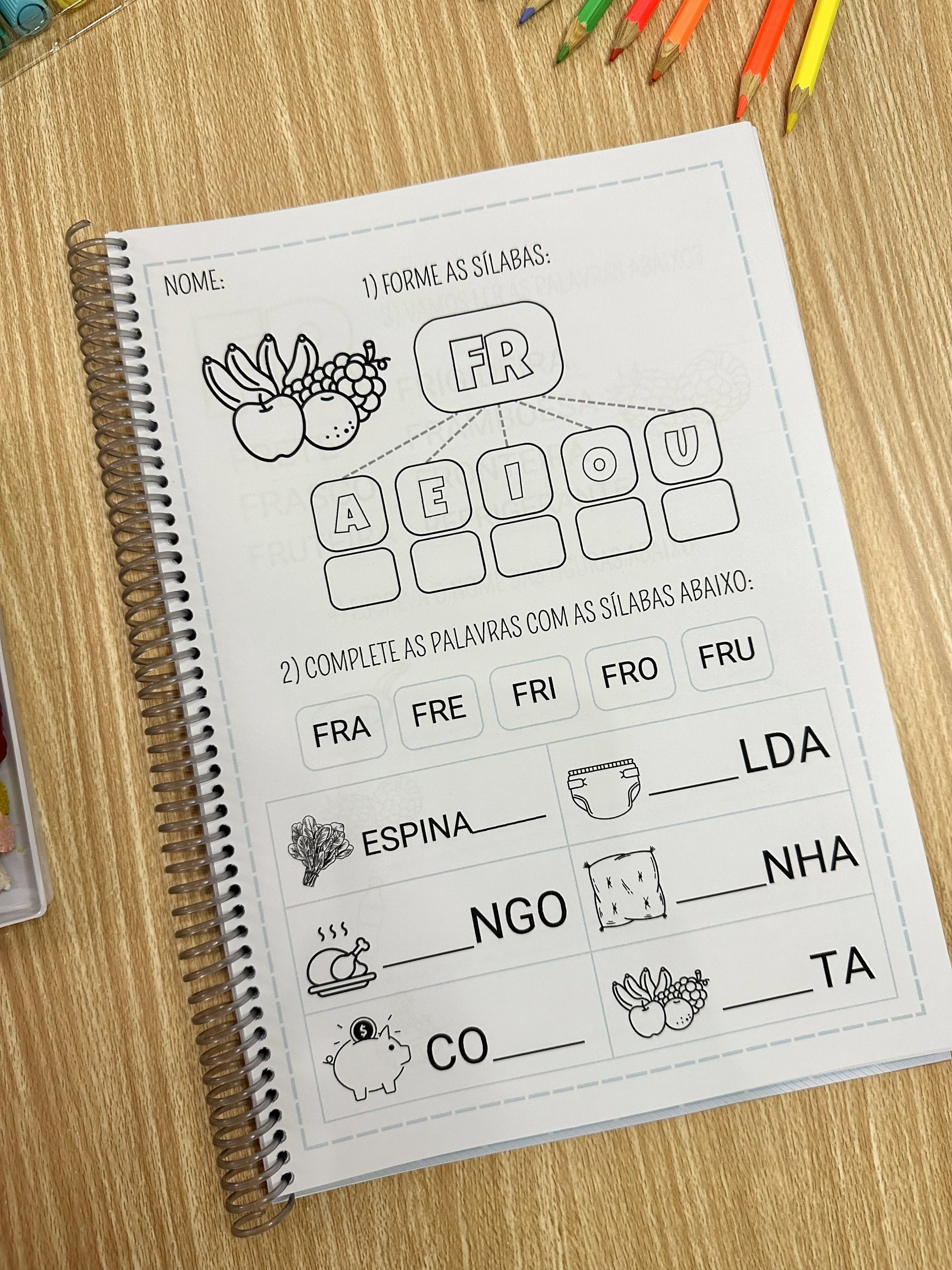 Com 49 páginas de atividades para colorir, o material trabalha de forma progressiva e lúdica o reconhecimento e a consolidação das sílabas complexas, auxiliando no avanço da leitura e da escrita.