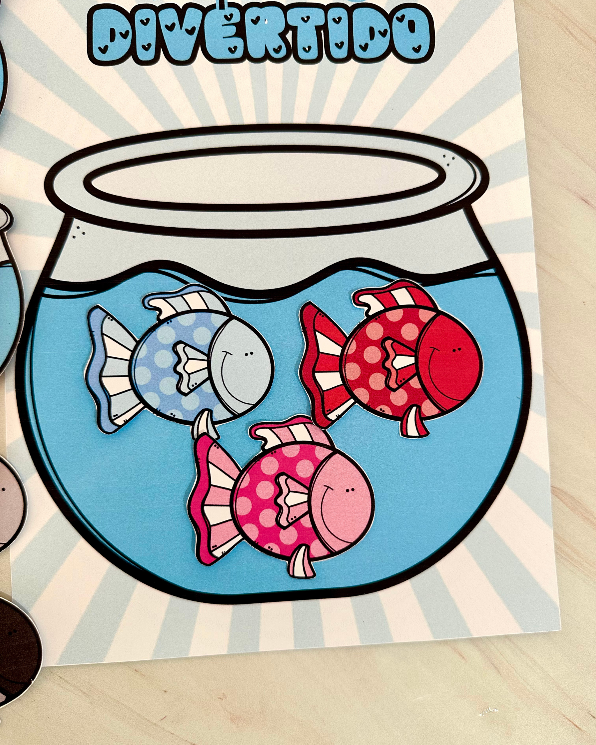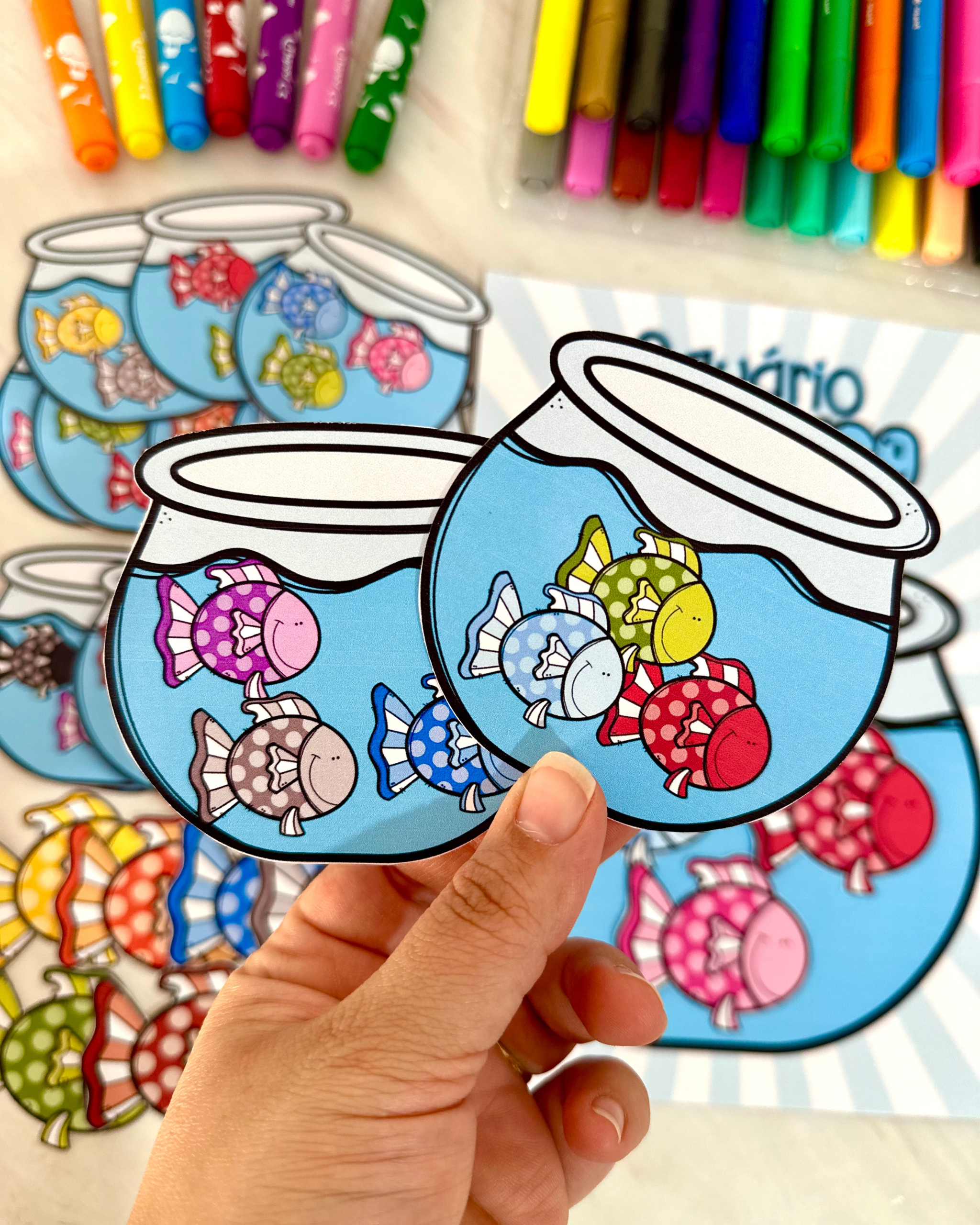 • Fichas criativas em formato de aquário e peixinhos.
