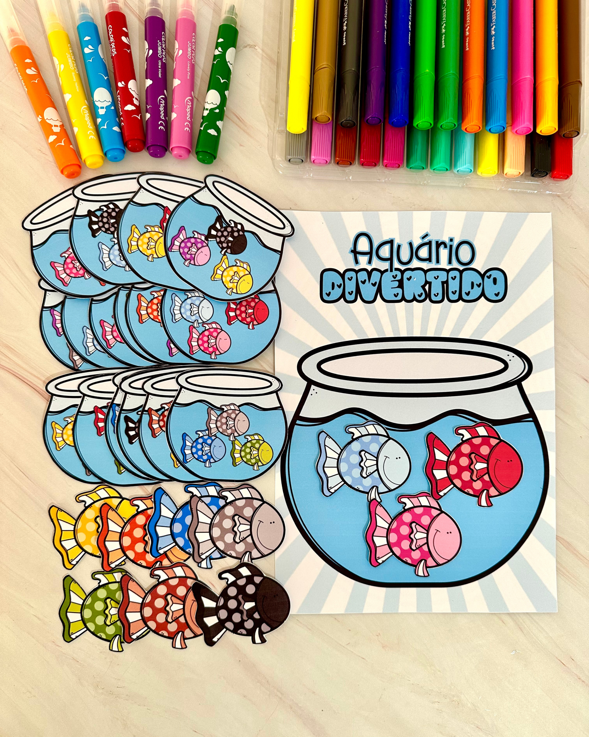 O Aquário Divertido é um recurso pedagógico pensado para trabalhar a contagem com crianças da Educação Especial, através de fichas em formato de peixinhos e aquário 🐟.