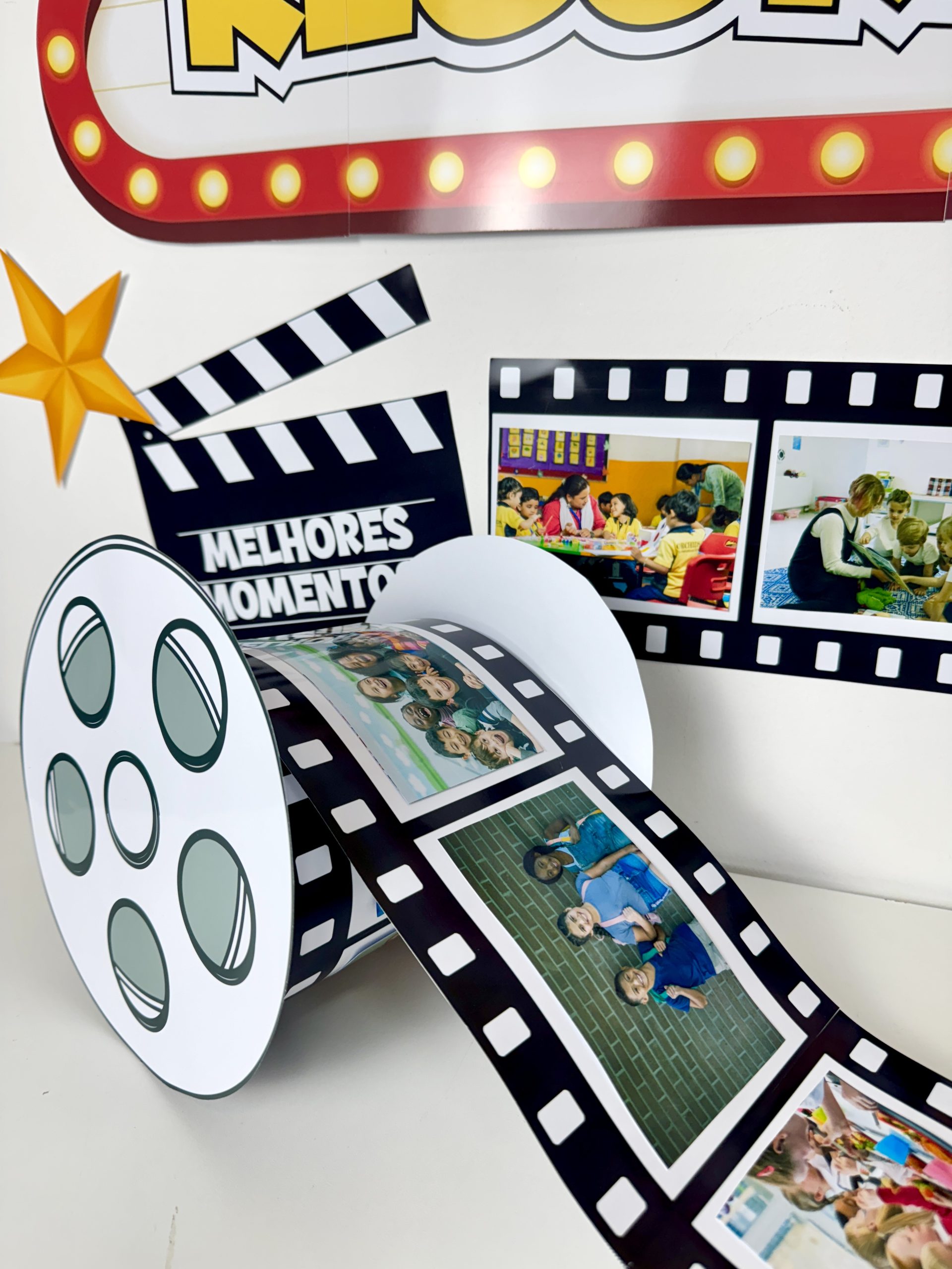 🌟 Perfeito para encerramentos, feiras pedagógicas e eventos escolares, ele cria um cantinho nostálgico, criativo e cheio de carinho, onde cada registro ganha destaque, brilho e significado.