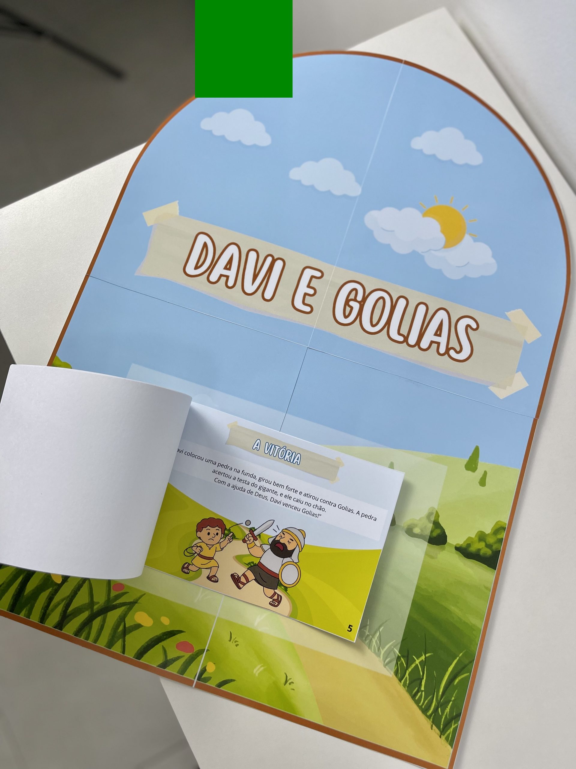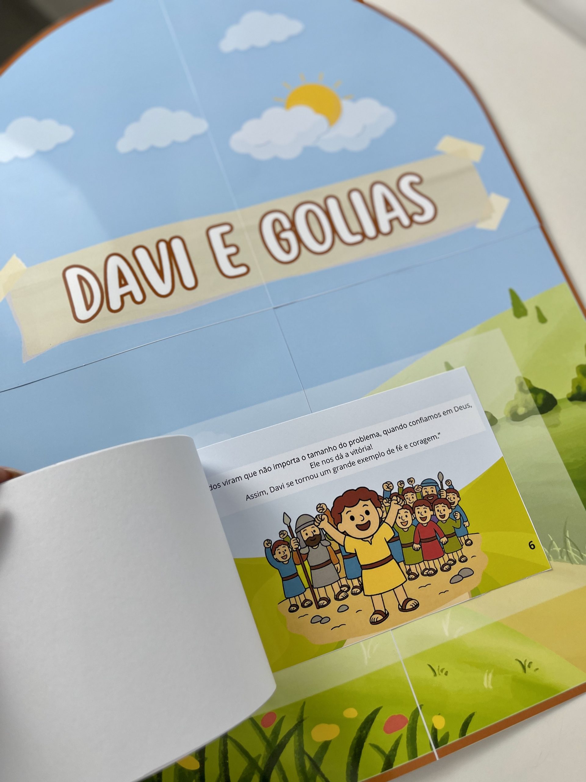 ⚔️ Davi e Golias – A história da coragem que nasce da confiança em Deus, mostrando que nenhum desafio é grande demais quando se tem fé.