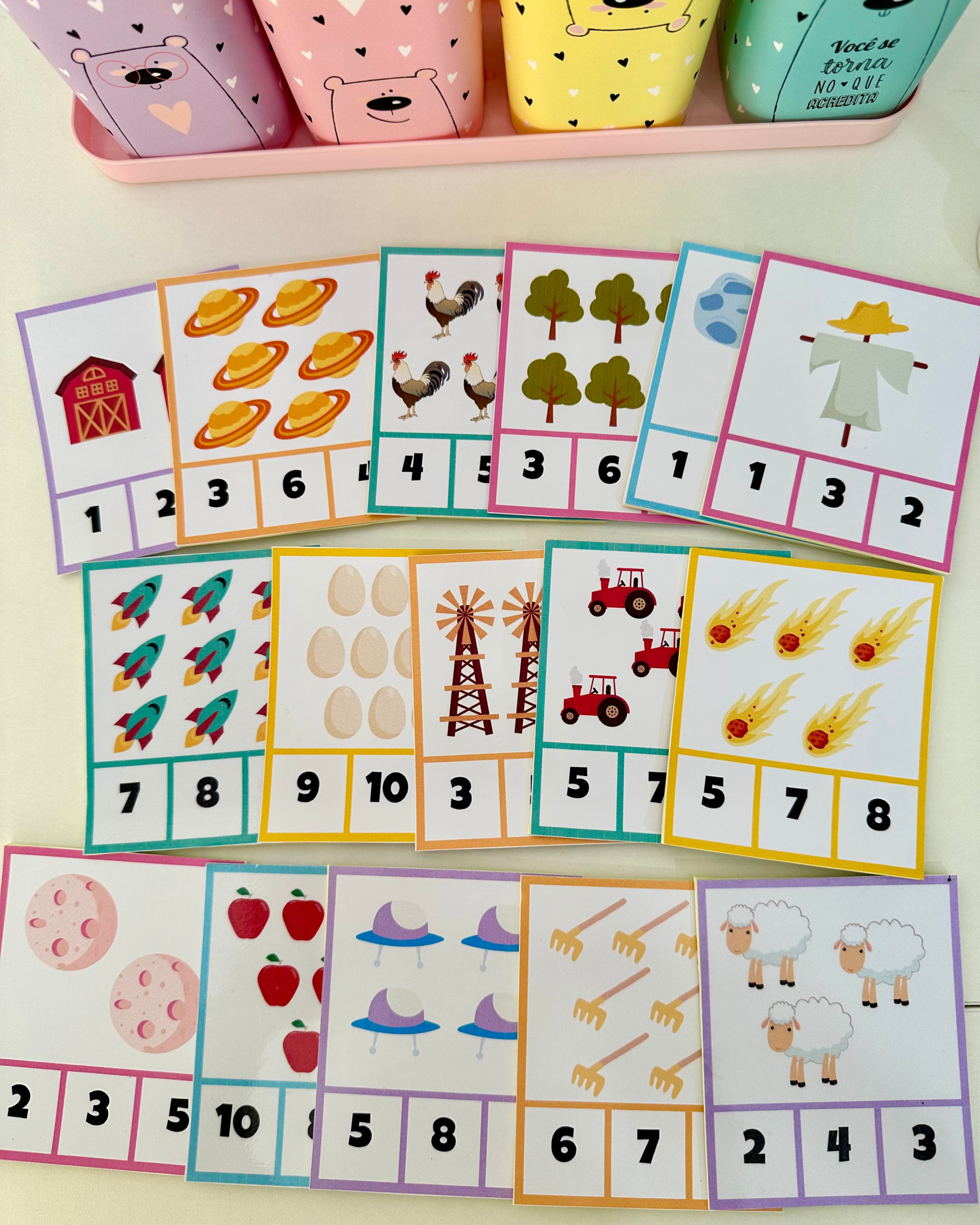 📘 O material vai em PDF pronto para impressão e inclui 24 fichas ilustradas para contagem, tornando a aprendizagem mais lúdica, interativa e divertida.