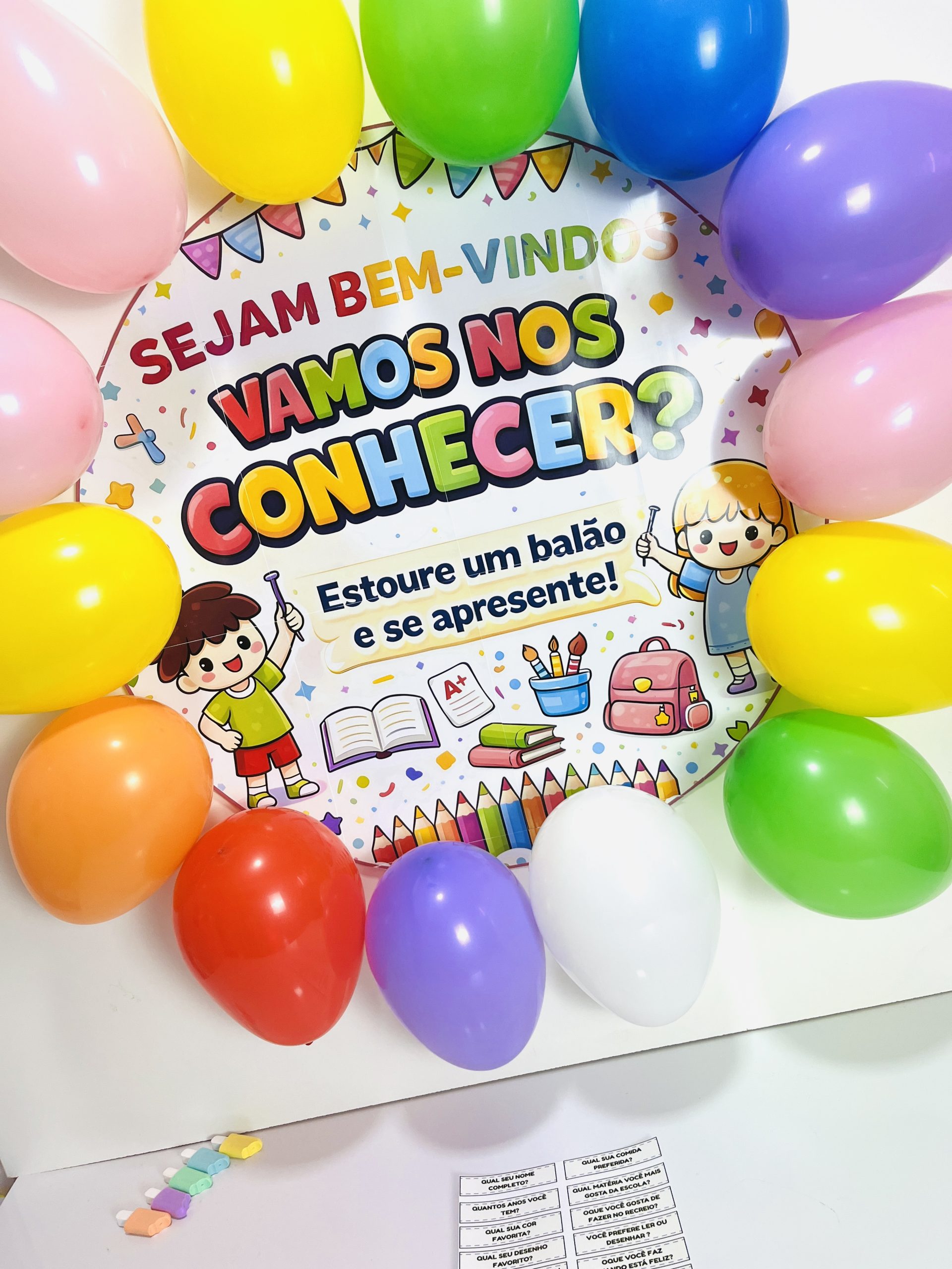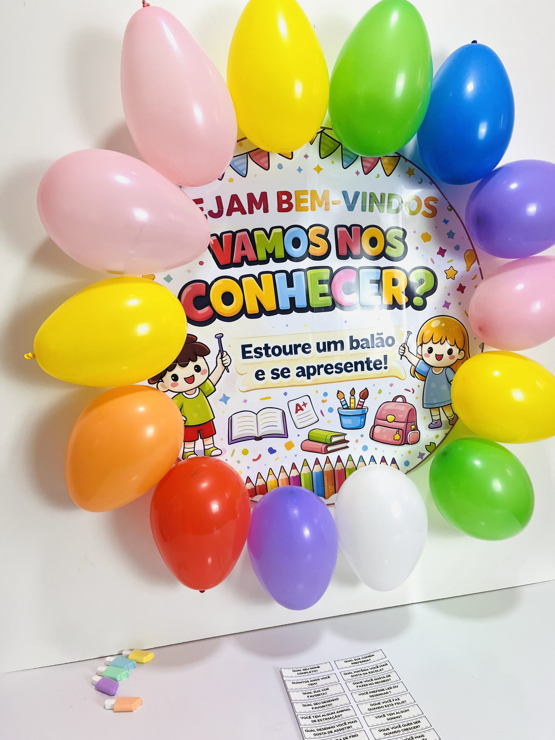 A Dinâmica Volta às Aulas – Balões Interativos foi criada para acolher os alunos de forma leve e divertida, estimulando a socialização, a oralidade e o autoconhecimento desde o primeiro dia de aula.