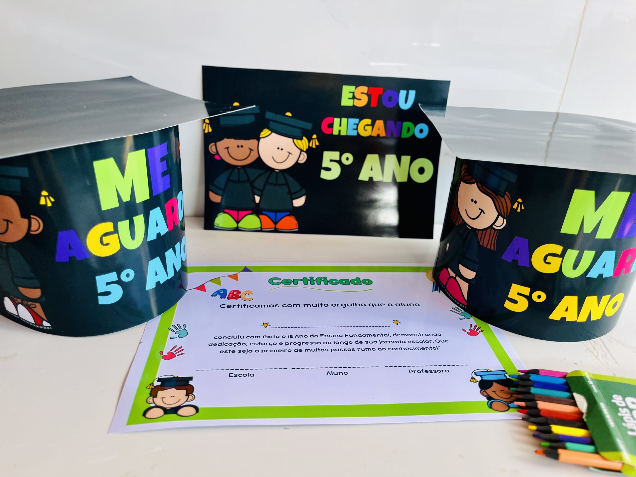 • Plaquinhas “Estou Chegando – 1º ao 5º Ano” — perfeitas para fotos, murais e registros especiais;