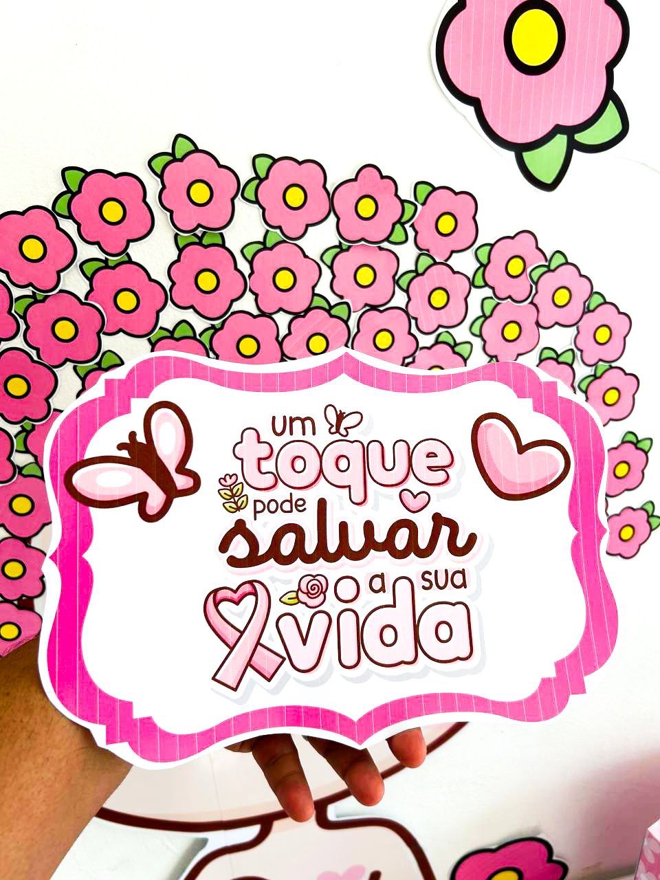 Conscientize e decore com estilo neste mês tão especial! 🌸 Um material completo para usar na escola, no ambiente de trabalho ou em eventos de campanha de prevenção ao câncer de mama.