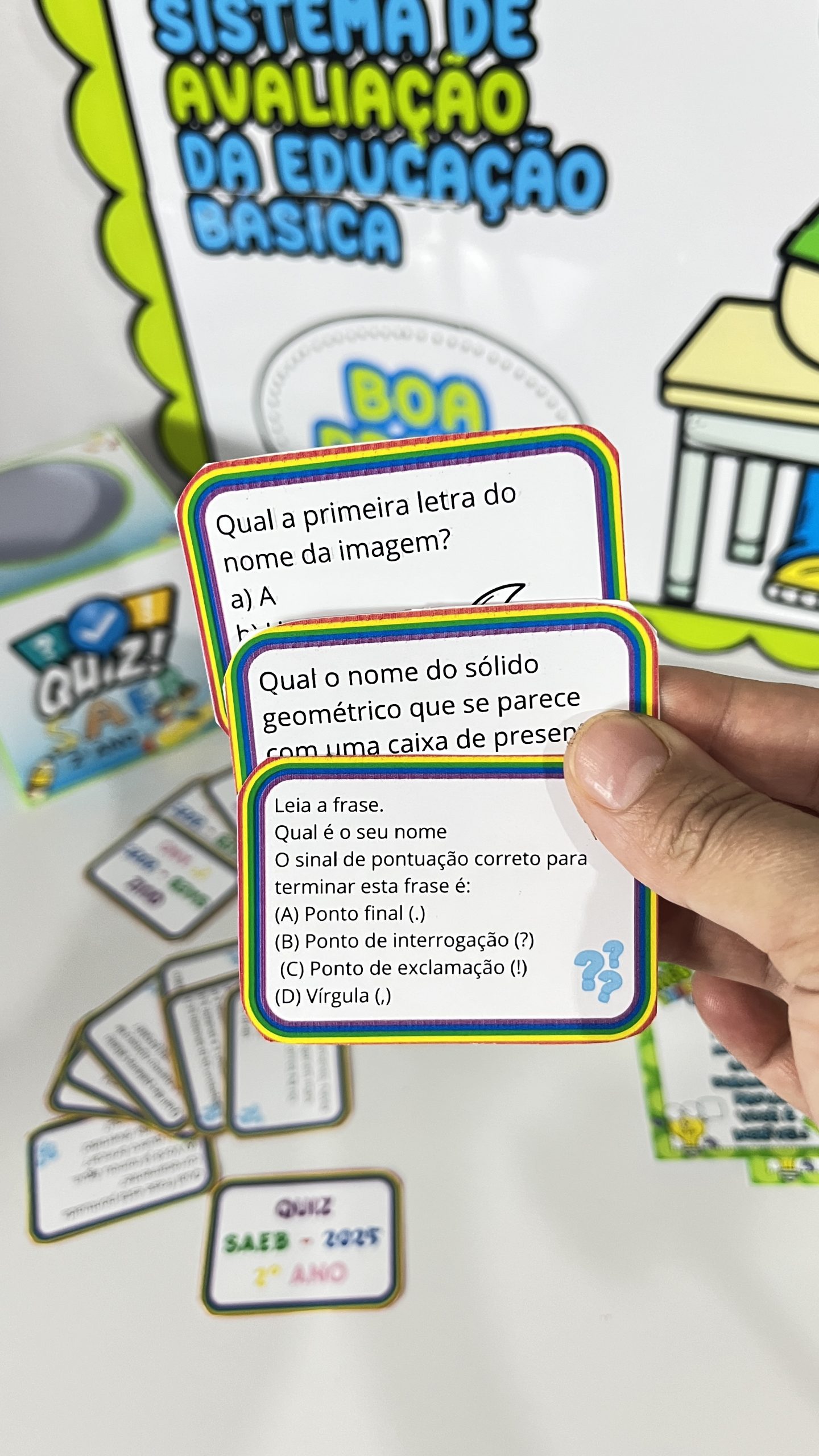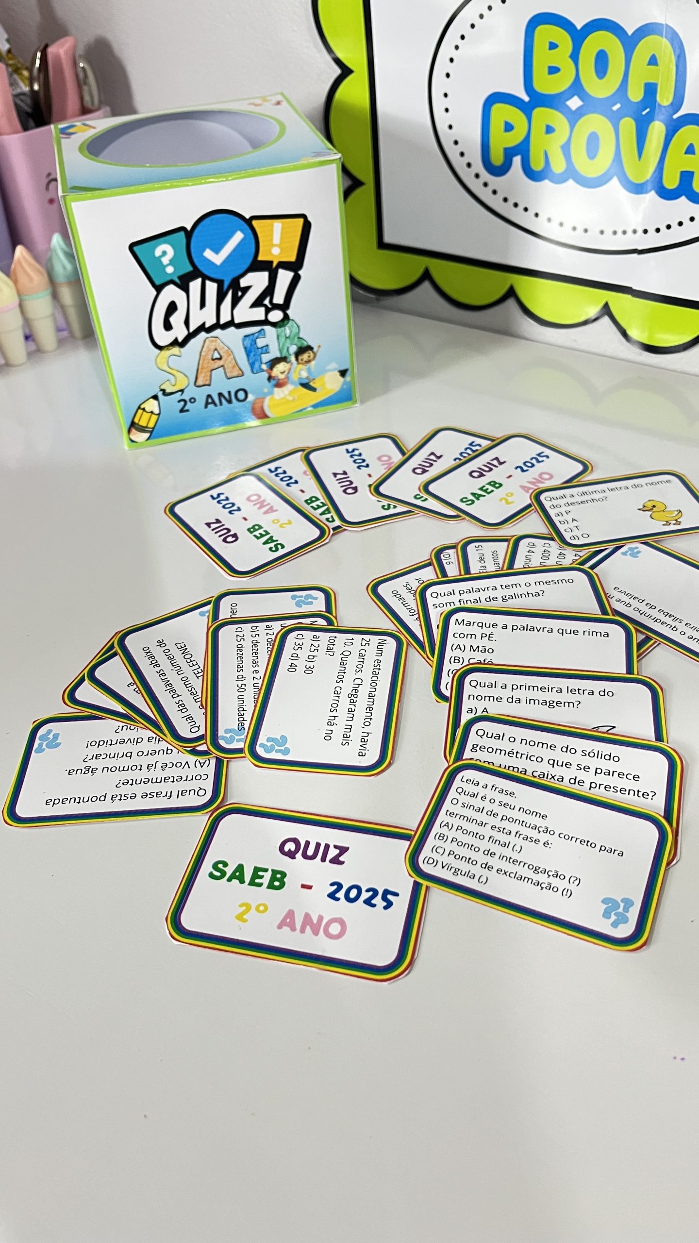 Mais de 90 cartas de quiz lúdicas para revisar conteúdos de Português e Matemática;