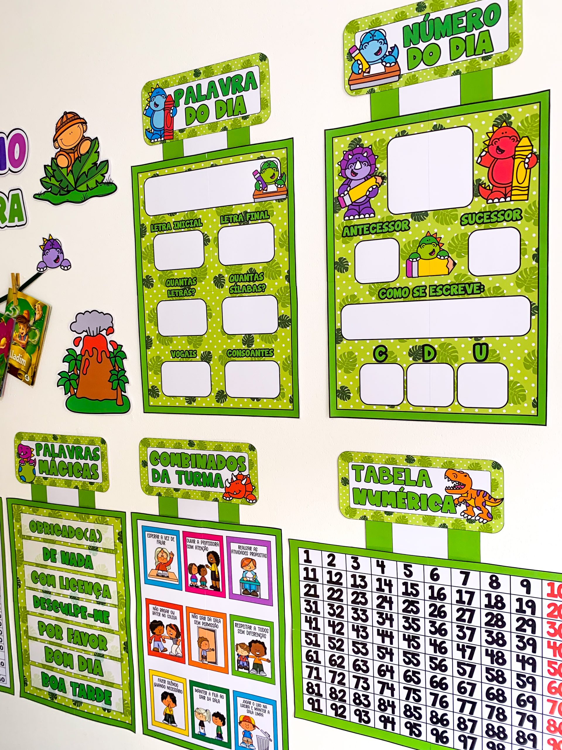 Deixe sua sala ainda mais organizada, acolhedora e divertida com o Kit de Ornamentação – Dinossauros!