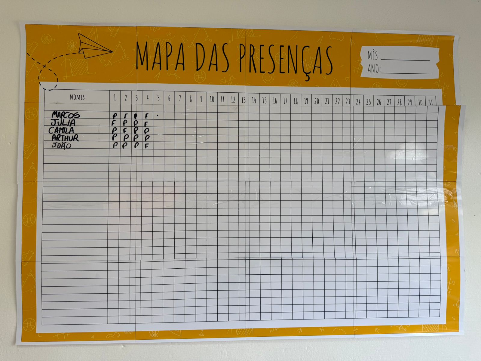 Com o Painel de Presença Interativo, cada criança participa ativamente ao marcar sua presença, desenvolvendo autonomia, responsabilidade e senso de pertencimento de forma leve e natural.
