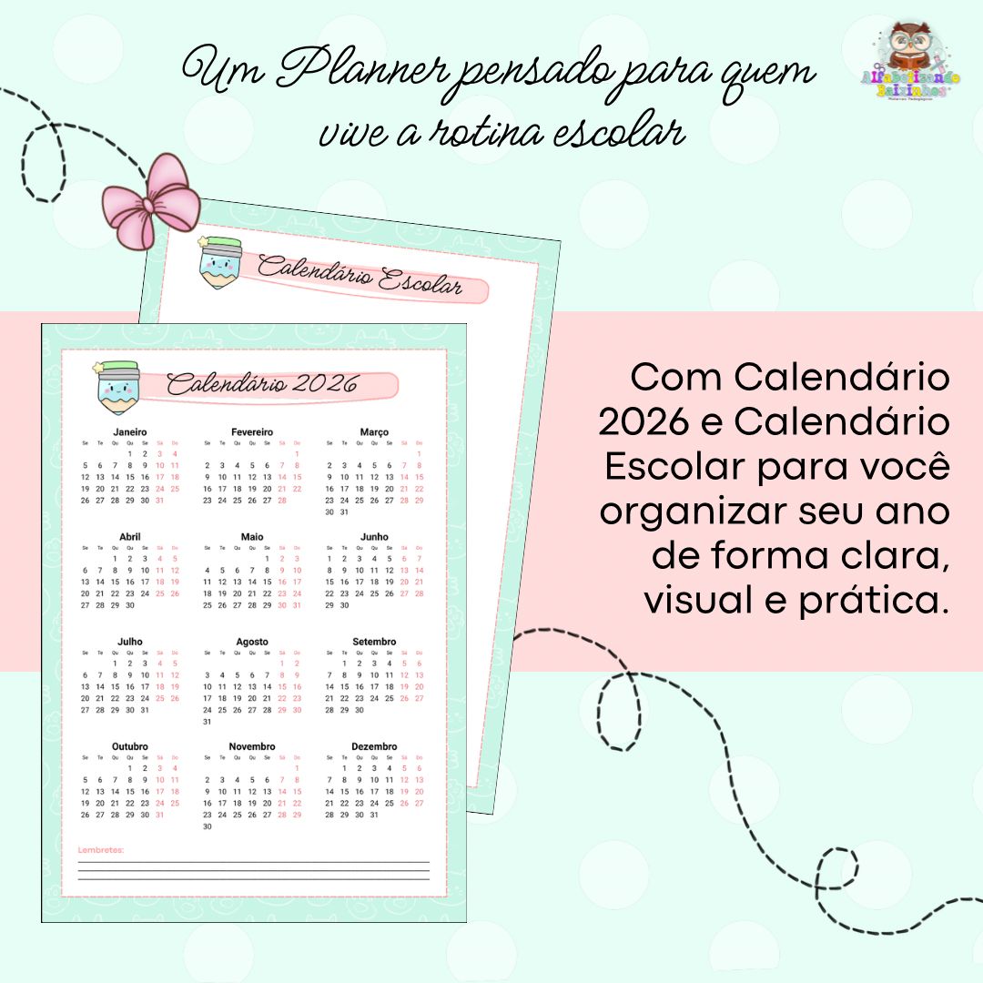 Já pensou em iniciar 2026 com um planner completo, funcional e pensado especialmente para a realidade da professora?