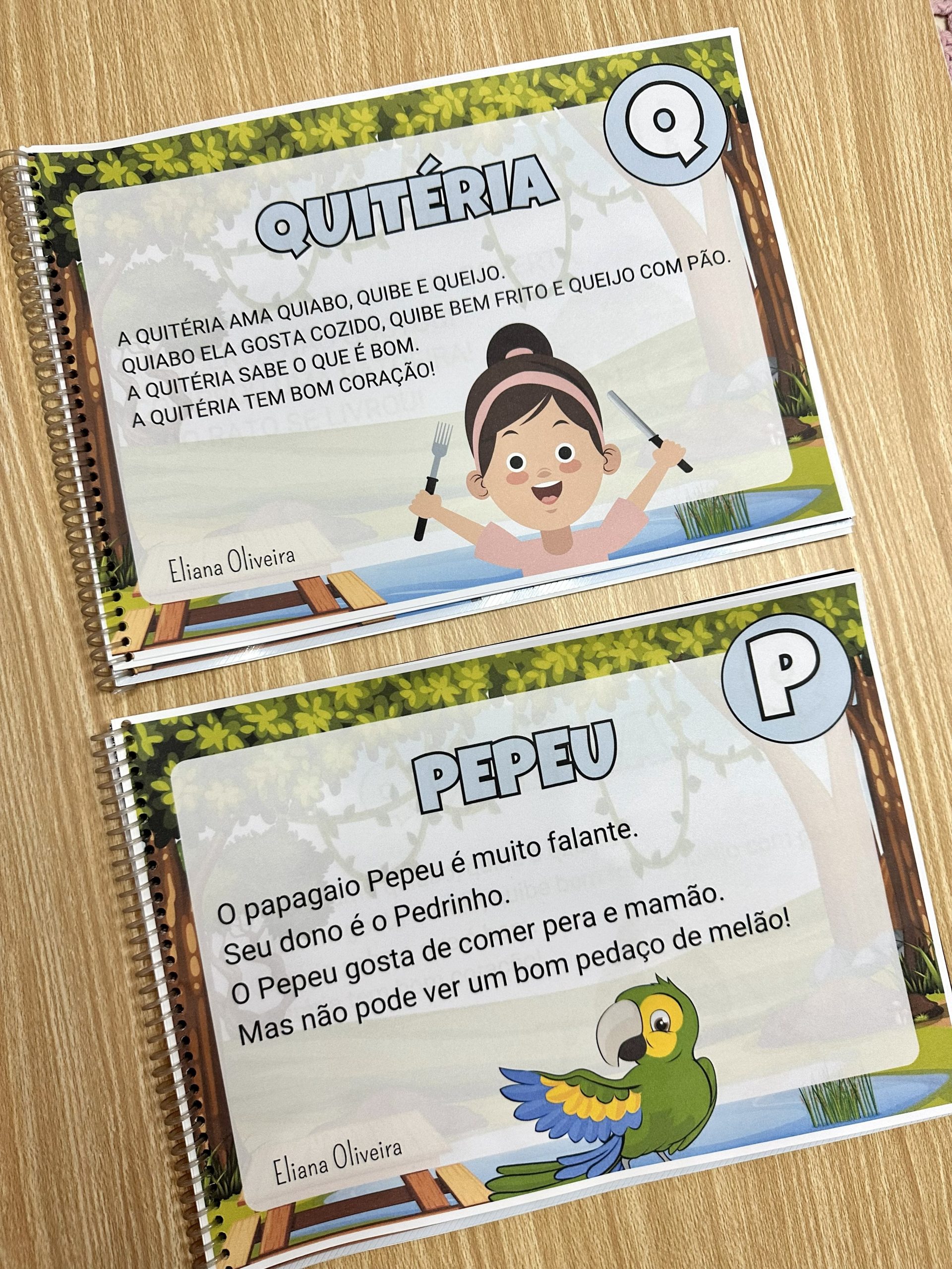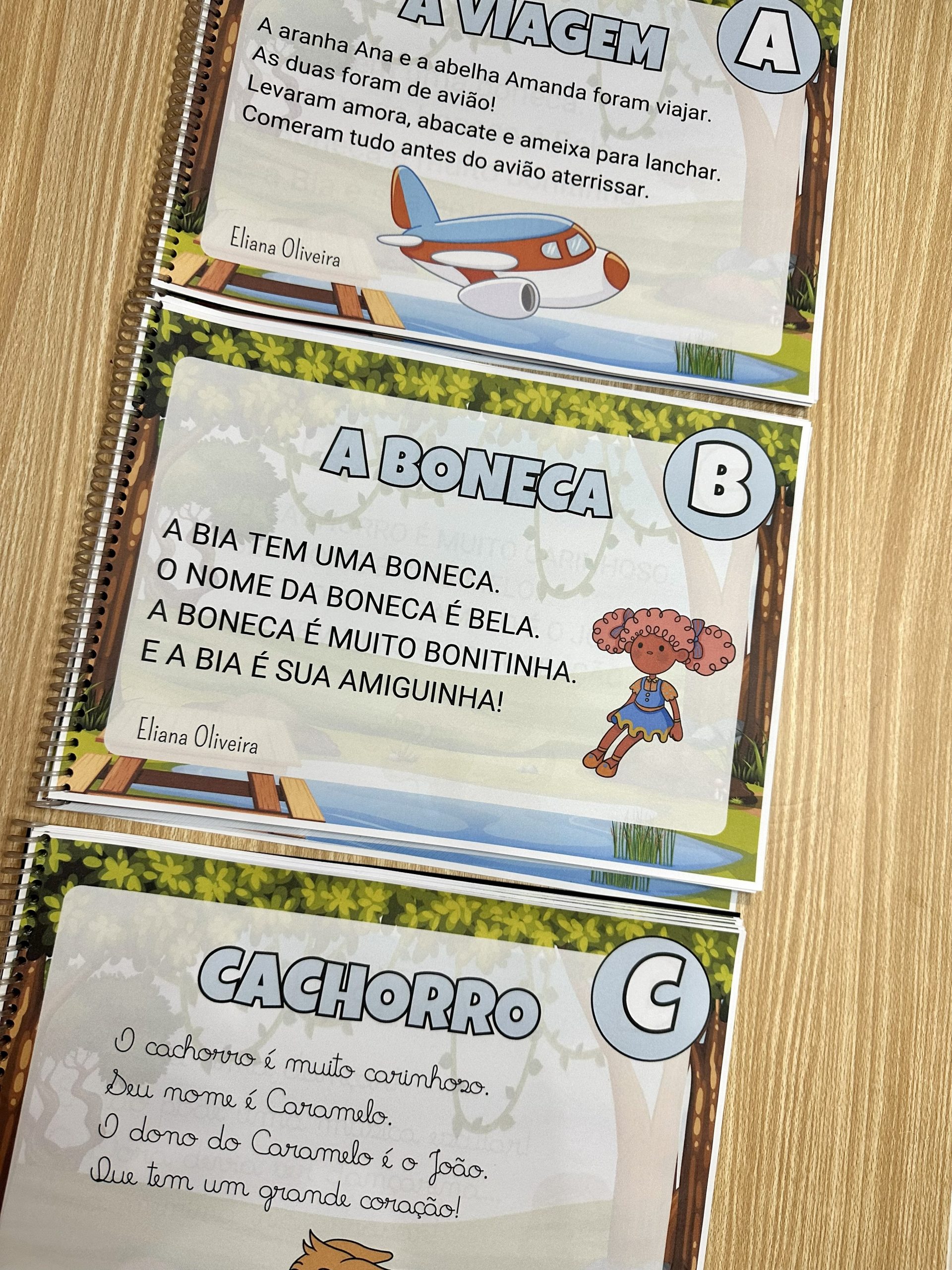 📘 O material inclui 26 textos com rimas, sendo um para cada letra do alfabeto, desenvolvidos especialmente para o treino da leitura e da compreensão leitora.