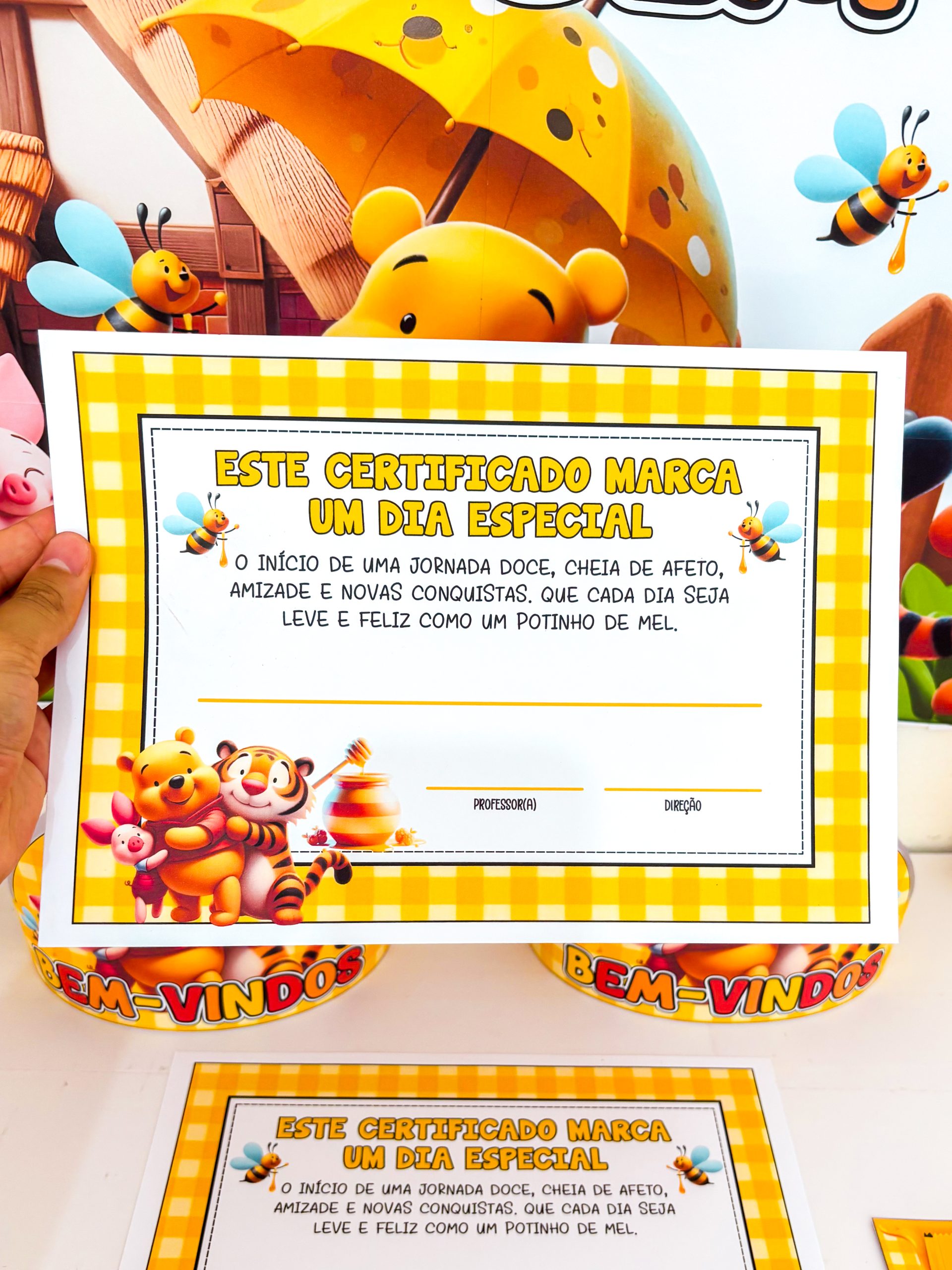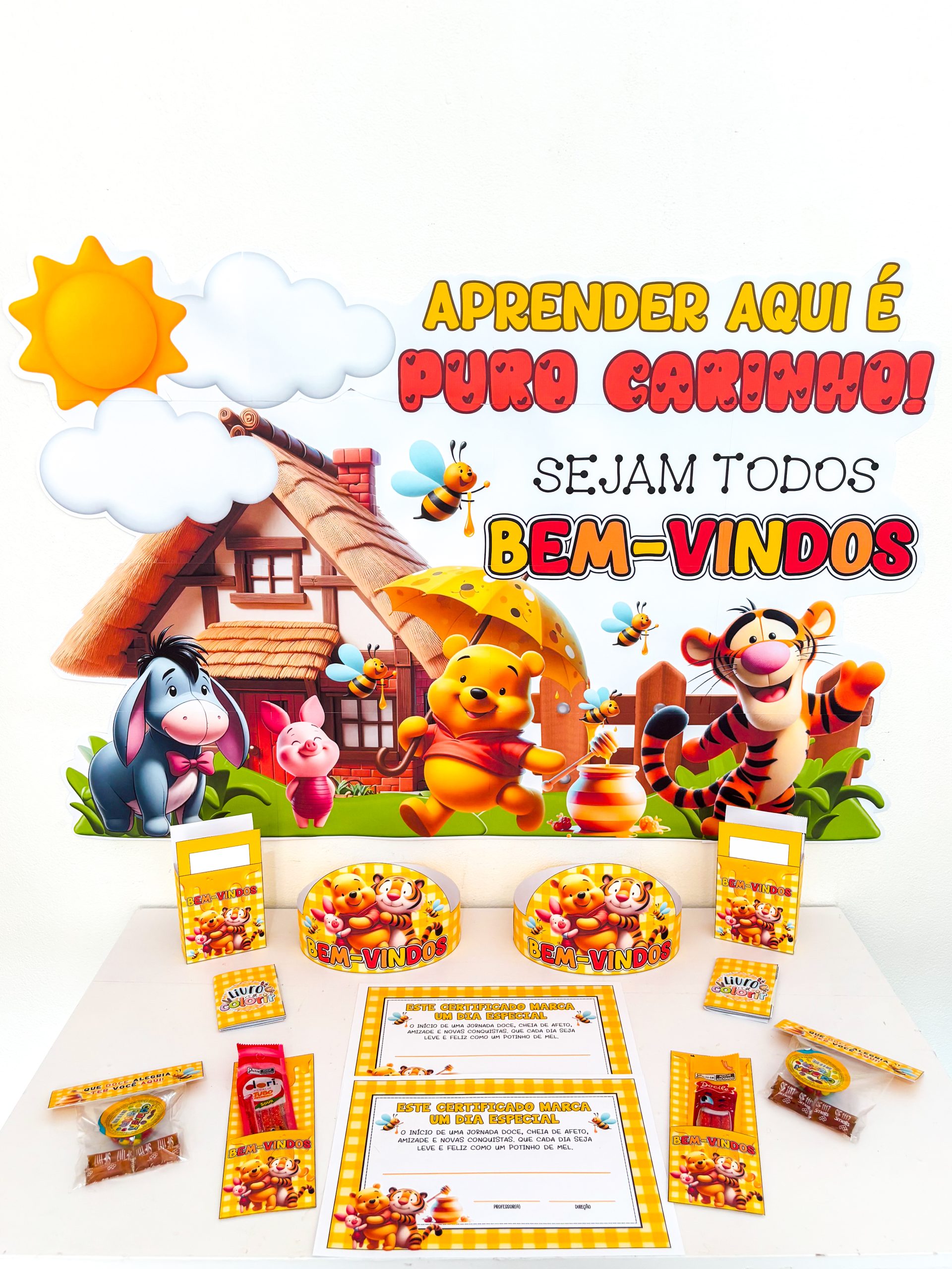 A Volta às Aulas pede acolhimento, doçura e afeto, e foi com esse cuidado que nasceu o Kit Volta às Aulas – Ursinho Pooh. Um material delicado, encantador e cheio de significado, pensado para transformar o primeiro dia de aula em uma memória afetiva especial.